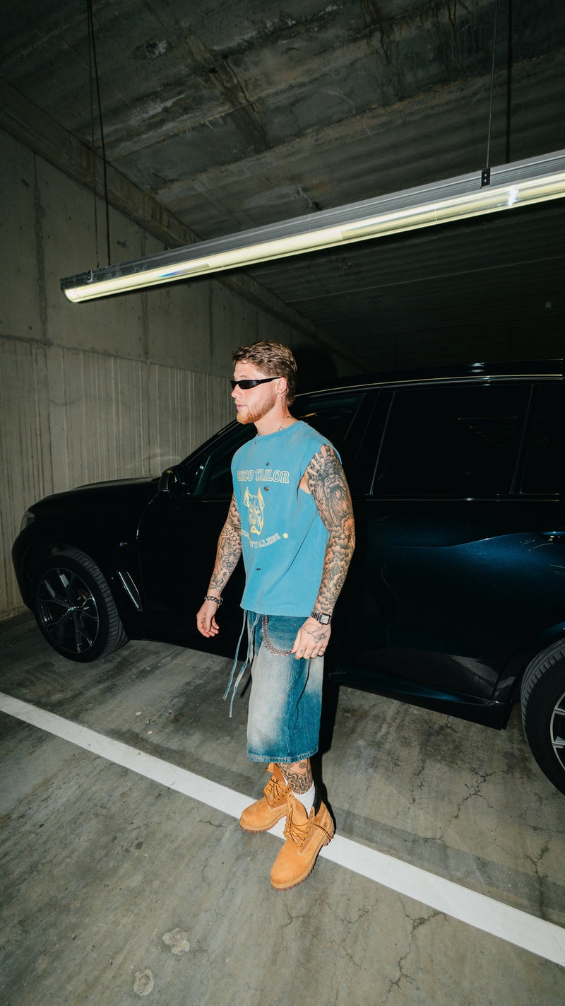 With the devastating wildfires that impacted California this year, particularly in Los Angeles, we wanted to convey a message of strength and unity. The distressed and washed details incorporated into the garments pay homage to the struggles faced by the state, while maintaining a firm and bold look that reflects the enduring spirit of its people and communities.
